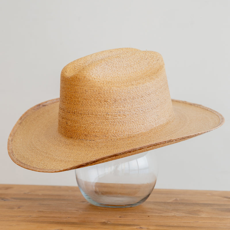 Made of hard palm, this basic cowboy hat comes in white and tan and is perfect to build on. Adding many of our different color bands from braided to crochet, this hat can change with your moods!